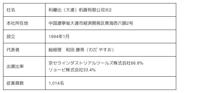※2 2018年中に「京瓷利優比(大連)机器有限公司」へ社名変更予定。