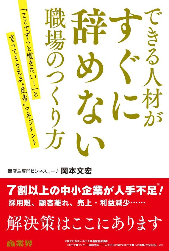 株式会社商業界(所在地:東京都港区、代表取締役社長:中嶋 正樹)は、人手不足に苦しむ中小企業の経営者や店長向けの書籍『できる人材がすぐに辞めない職場のつくり方』を、2018年1月25日(木)に発刊します。