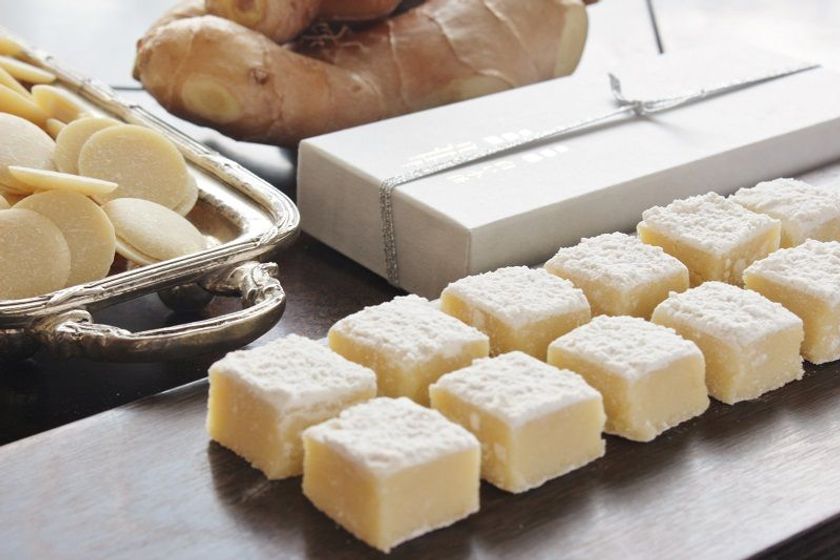 ミルク風味豊かなフランス産のホワイトチョコレートに、北海道産のしょうがシロップと、愛知の木村農園さんから分けていただいた「金時しょうが」を加えて練り上げた生チョコです。