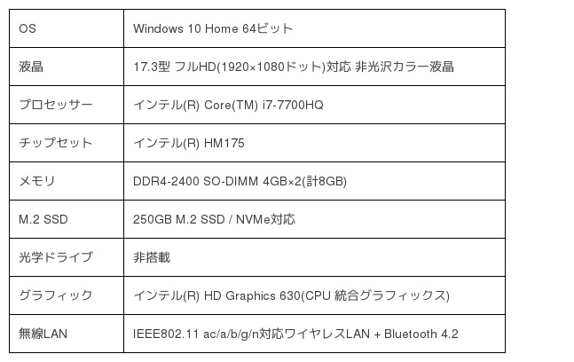 ●製品名:STYLE-17FH053-i7-HNSX [Windows 10 Home]