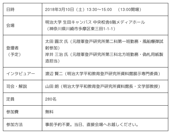 ※詳細等は、明治大学平和教育登戸研究所資料館HP(http://www.meiji.ac.jp/noborito/index.html)をご確認ください