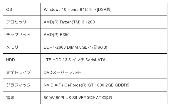 AMD製デスクトップ向けプロセッサーで高い動作クロックで評判のRyzen(TM) 3 1200を採用しました。これまでのアーキテクチャから進化した「ZEN」アーキテクチャとなり、今までにない高性能かつ高効率化を実現します。ゲーム用途など高い演算処理能力を必要とするシーンにおいても優れたパフォーマンスを発揮します。