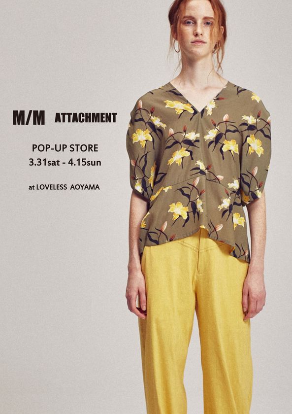 メンズブランドATTACHMENTが手掛ける初の本格的レディースライン「M/M ATTACHMENT(エムエム アタッチメント)」は、初の試みとなるPOP-UP STOREを、セレクトショップLOVELESS青山店にて2018年3月31日(土)〜4月15日(日)に開催いたします。