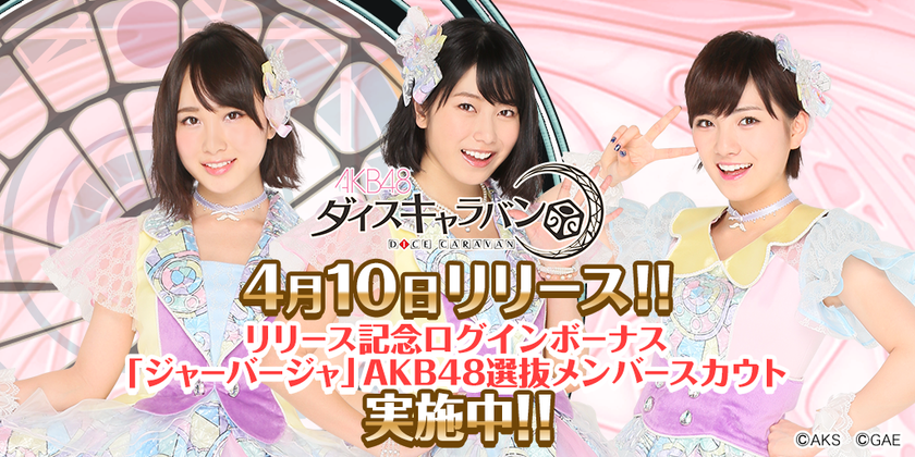 株式会社GAE(本社:東京都武蔵野市、代表取締役:大友貴司、以下 GAE)は、AKB48を起用したゲームアプリ『AKB48ダイスキャラバン』(略称:ダイスキ)を、本日4月10日(火)よりサービス開始いたしました。
