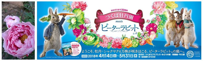 国内最大級の牡丹園「つくば牡丹園」が30周年記念で、映画『ピーターラビット(TM)』とコラボ。ピーターの小屋やバニー・カチューシャなど、撮影スポット満載!