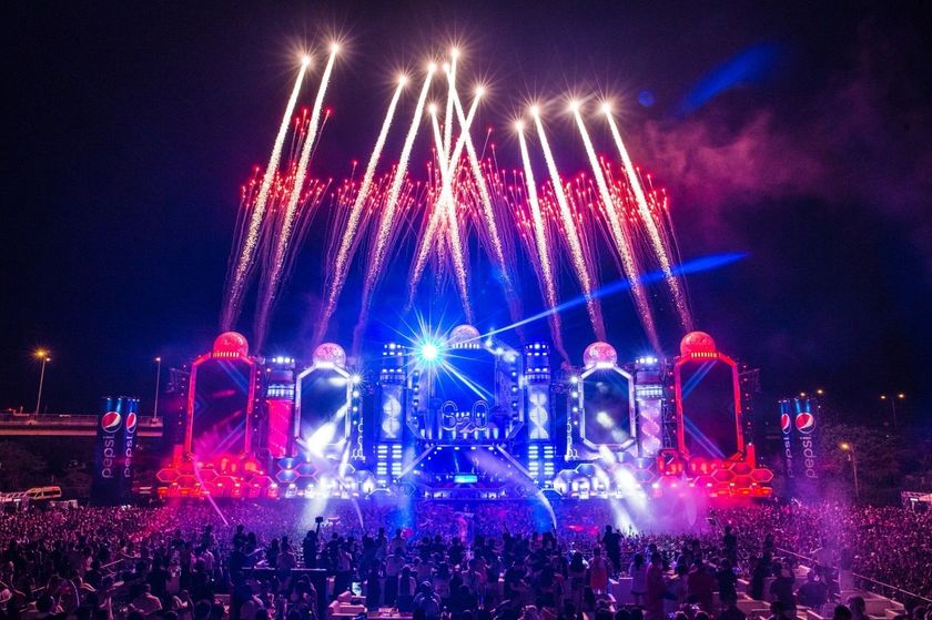 巨大な貯水タンクや給水管をモチーフにした“巨大な水の工場”を連想させる、S2Oならではのステージセットには、多彩で絢爛な映像が映し出され、縦横無尽に飛び交うレーザーの光や、ステージ上に上がる炎や花火が盛り上がりをさらに加速。