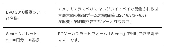 Twitterアカウントのフォローと対象ツイートのリツイート、アンケートの回答でどなたでもチャンスあり!ラスベガスで開催されるEVO 2018 観戦ツアー、Steamウォレットが当たる!