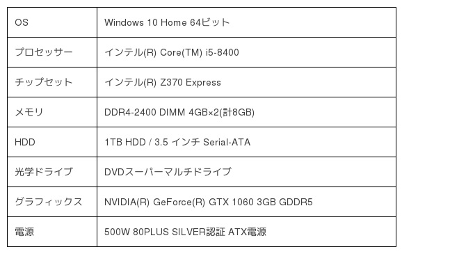 ■ インテル(R)Core(TM)i5とNVIDIA(R)GeForce(R)GTX1060[3GB]搭載のミニタワーモデル