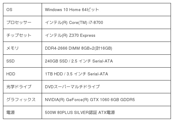 ■ インテル(R)Core(TM)i7とNVIDIA(R)GeForce(R)GTX1060[6GB]搭載のミドルタワーモデル