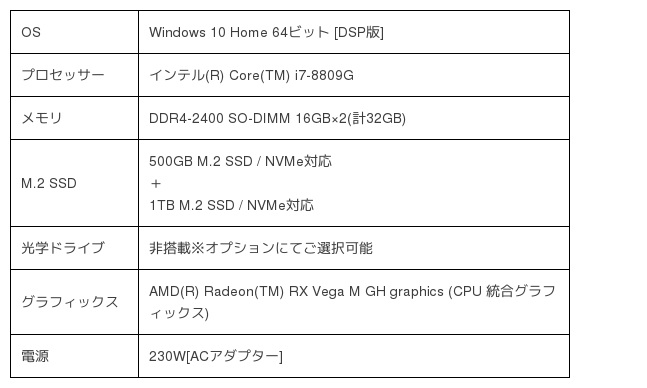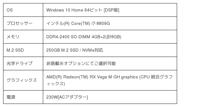 ■ 第8世代インテル(R)Core(TM)i7-8809G/Core(TM)i7-8705G搭載