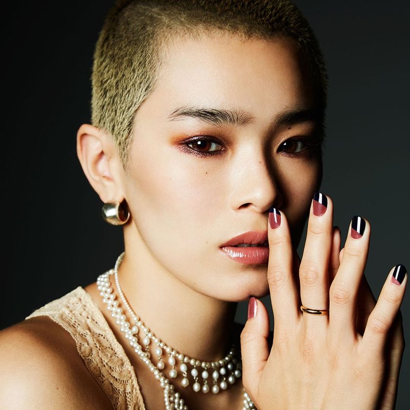 人気No.1のスパークリングジェムは、多色パールでプラムブラウンを神秘的に。グロッシーなリップは、ピンクや紫のパールでピュアさと立体感を引き出して。ネイルカラーは、相反する2色のようで実は、赤みのラメとパールで通じ合う大人の余裕と遊び心を感じさせる仕上がり。