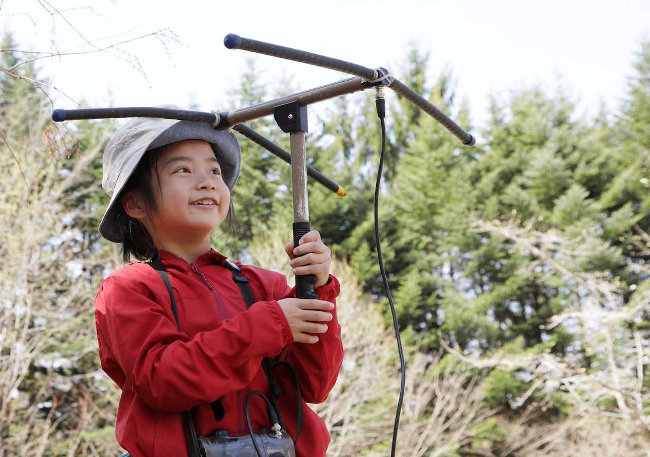 ピッキオでは、クマを捕獲して麻酔をかけ、電波発信器を装着してから森に放します。そして、アンテナを使ってクマの行動を追跡します。本プログラムでは、実在するクマの居場所を調べる他、スタッフが森に隠しておいた発信器の在りかを、子供たちが見つけ出す、ゲーム形式の体験も行います。