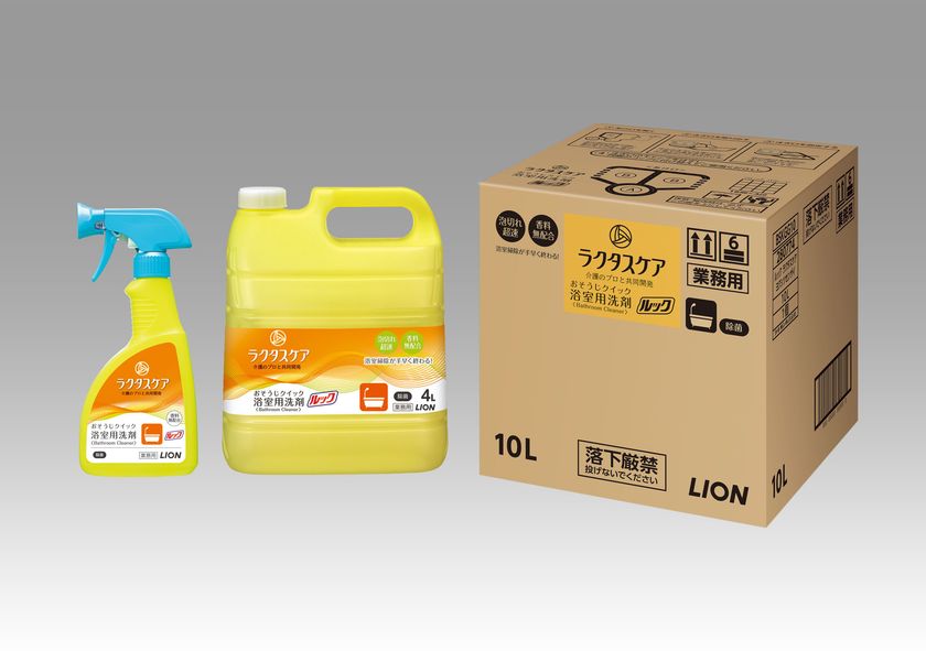 ライオン株式会社(代表取締役社長・濱 逸夫)は、1日に何度も入浴介助と浴槽掃除を繰り返す介護施設のニーズに応え、素早い泡切れで浴室掃除のすすぎの時短・節水ができ、香料無配合の業務用の浴室用洗剤『ルック ラクタスケア おそうじクイック浴室用洗剤』を、2018年8月28日(火)から新発売いたします。