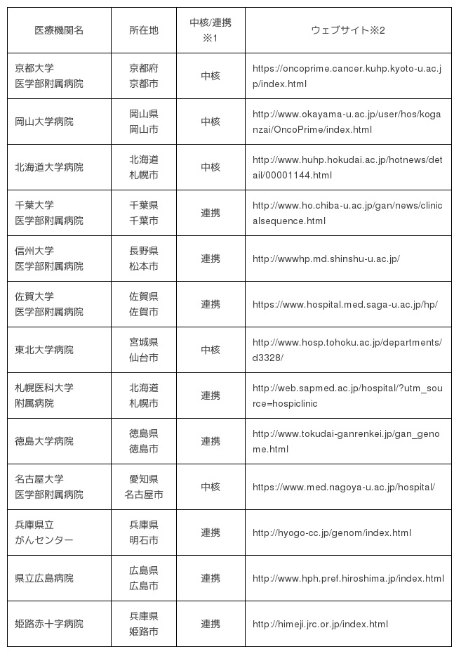 ※1 中核:がんゲノム医療中核拠点病院、連携:がんゲノム医療連携病院