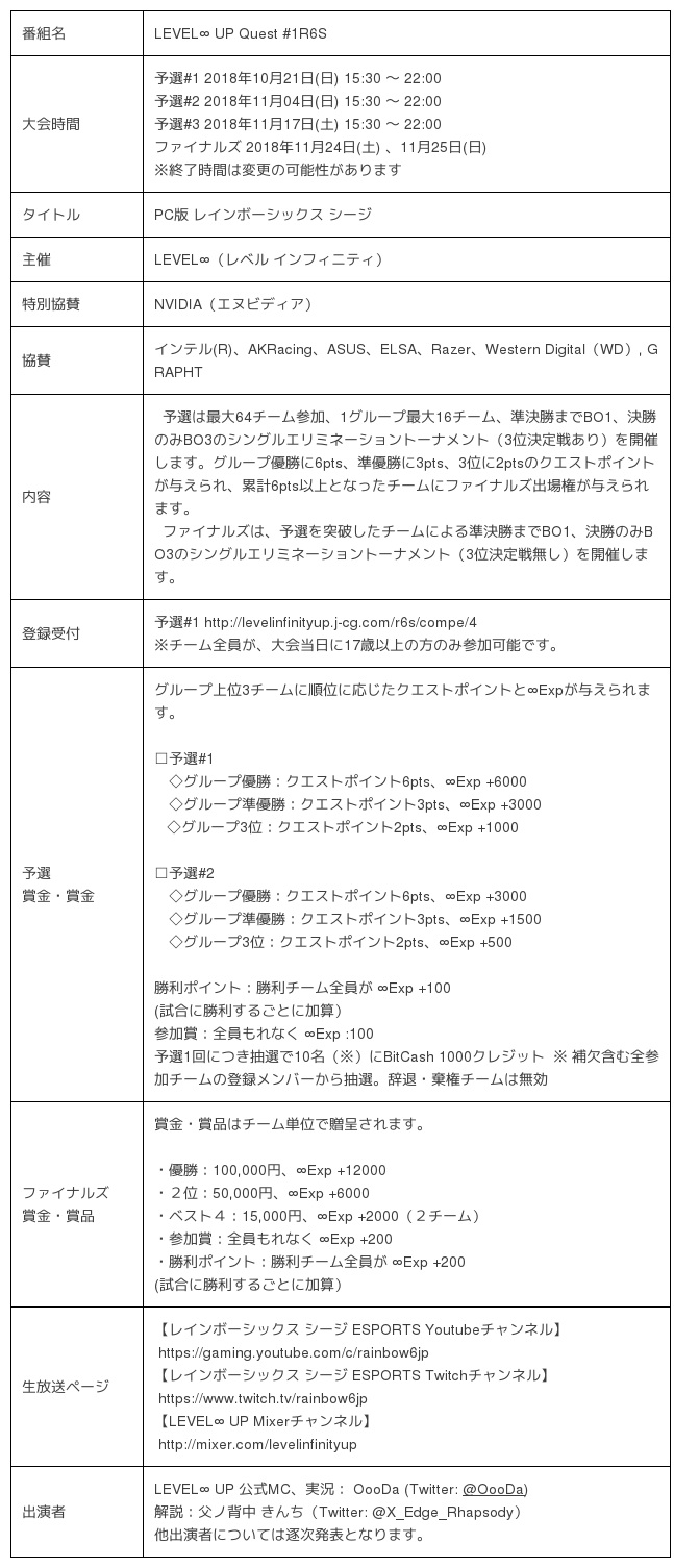 LEVEL∞ UP Quest#1 R6S 公式サイト