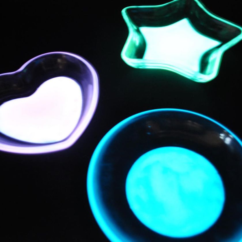 蛍光灯やLED、太陽光等の日常の光で簡単に蓄光可能です。