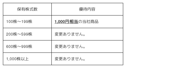 変更後は、100株〜199株を保有いただいている株主の皆様へ、従来の500円相当から拡充し1,000円相当の当社商品をお渡しする内容になっております。カンロでは今後も株主様およびステークホルダーの皆様のご期待に沿えるよう、企業価値の向上に努めてまいります。