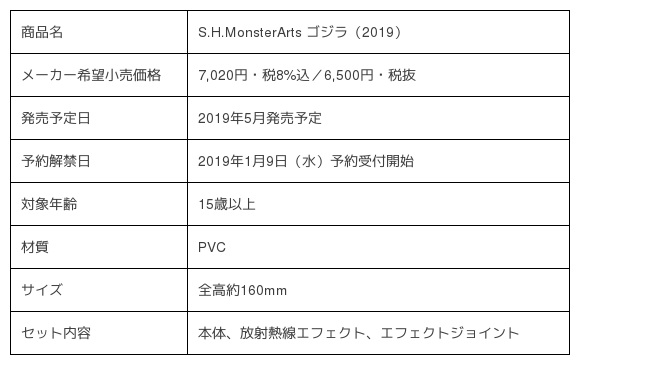 ■『S.H.MonsterArts ゴジラ(2019)』商品概要