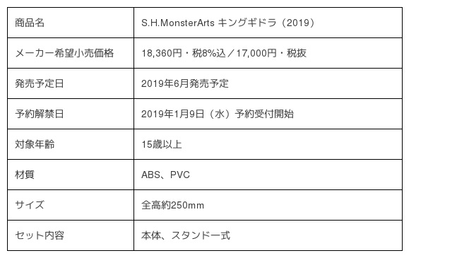 ■『S.H.MonsterArts キングギドラ(2019)』商品概要