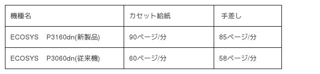 ※ ECOSYS P3160dnの場合。モノクロA4プリンターECOSYS P3060dnと比較。