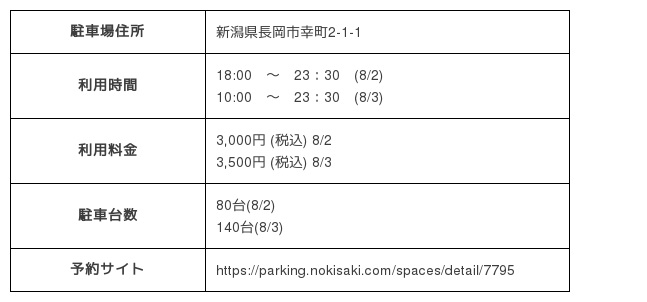 ■「長岡まつり大花火大会」公式臨時駐車場予約サービス 概要