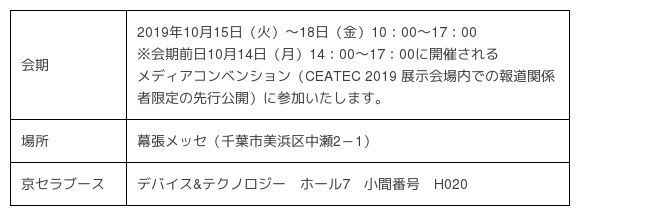 京セラCEATEC 2019のスペシャルサイトも併せてご覧ください。