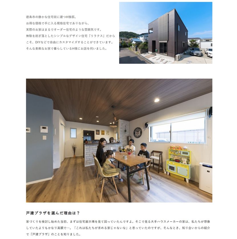 株式会社プラザセレクト(本社:徳島県北島町、代表取締役:三谷 浩之、以下 プラザセレクト)は2019年10月から、自社が運営する住宅不動産ショップ「戸建プラザ」で販売している住宅商品「リラクス」のホームページ上にて、ご契約済みのお客様インタビューをまとめた「お客様の声」ページを公開しました。