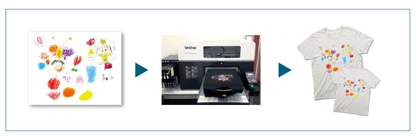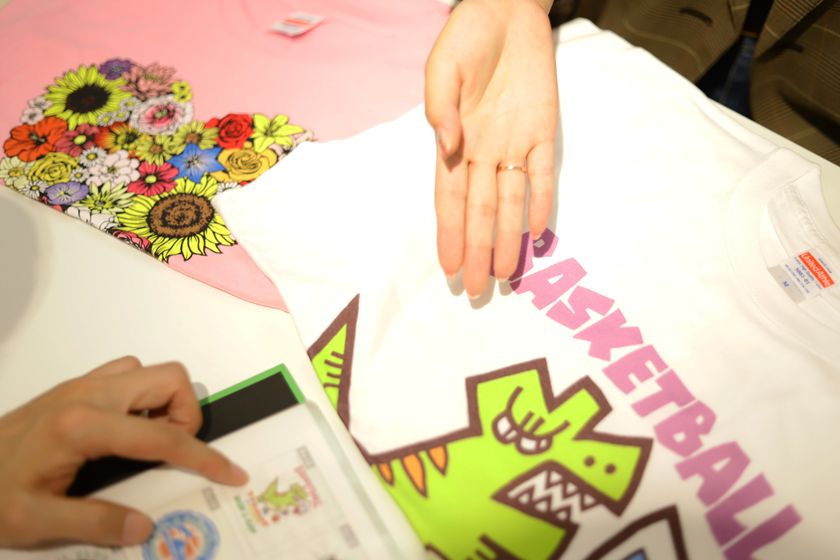 PRINTONE内のコンテンツ見学やデザイン体験を通して、イメージを膨らませたら、その場で当社デザイナーと一緒にTシャツなどのデザイン作成ができます。また、商品作成や加工工程の見学も可能。(※一部商品が対象となります。加工法や商品の制限あり)