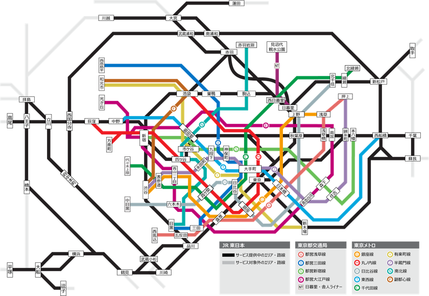 ・JR東日本 246駅、都営交通 110駅、東京メトロ 139駅