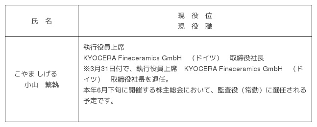 ※京セラコミュニケーションシステム(株)取締役は、引き続き兼任いたします。