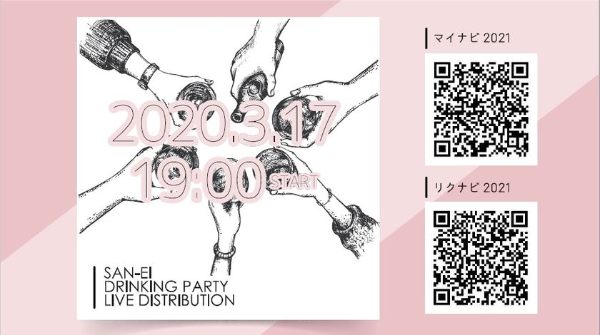 株式会社サンエイ工務店(本社:三重県四日市市、サンエイグループ代表取締役:山下 友和、以下 当社)は、採用活動の一環として2020年3月17日に「オンラインで社内飲み会をリアルタイム配信」いたします。当社を志望される学生は、リクナビ・マイナビにて飲み会風景を見学していただけます。