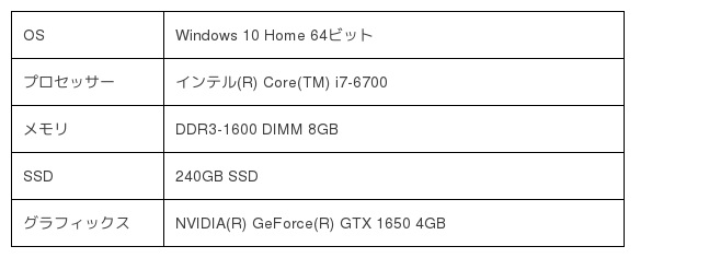 「ゲーミング中古PC」スペック 一例 ※