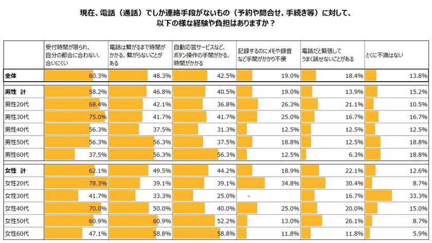 特にここ十数年では、携帯電話の普及、そしてLINEをはじめとするメッセージアプリの登場で日々のコミュニケーション手段の活用に大きな変化が起こっています。 本調査においても電話やメッセージアプリなどのコミュニケーション手段の多様性が浮き彫りになり、「電話に苦手意識を感じている」人たちが一定数存在することが分かりました。