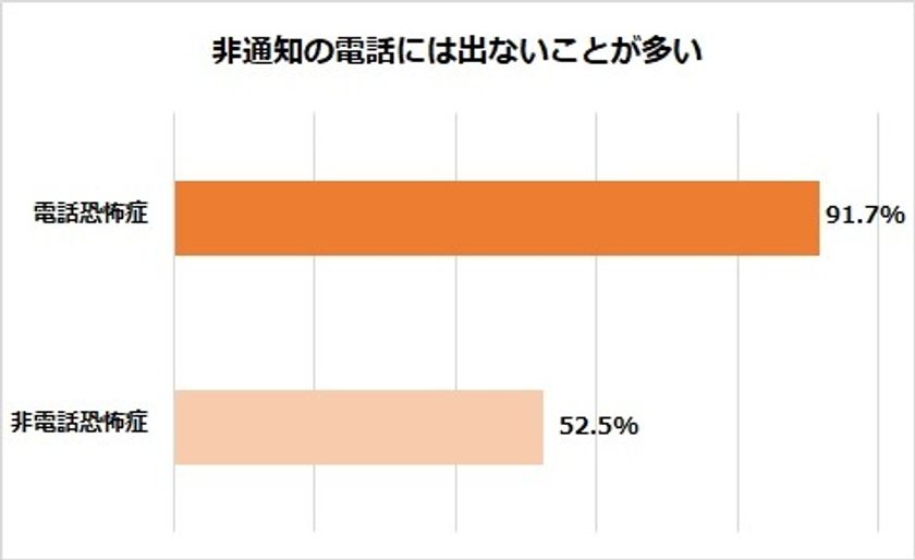 電話でのコミュニケーションに苦手意識を持ち、「非通知や知らない番号からの着信には出ないことが多い」人が9割以上を占め、自ら電話をかけることもストレスに。