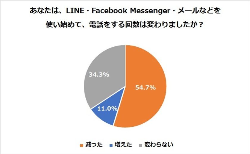 LINEなどのメッセージアプリの普及により、全体の半数以上の人がアプリの利用によって電話回数が減ったと回答。