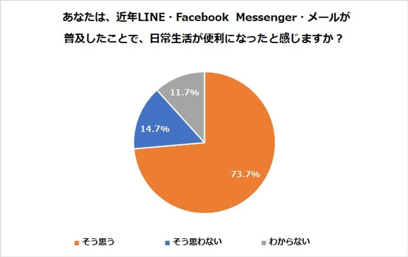 加えて、全体の7割以上の人がメッセージアプリの普及に「便利さ」を感じているという結果が出ました。