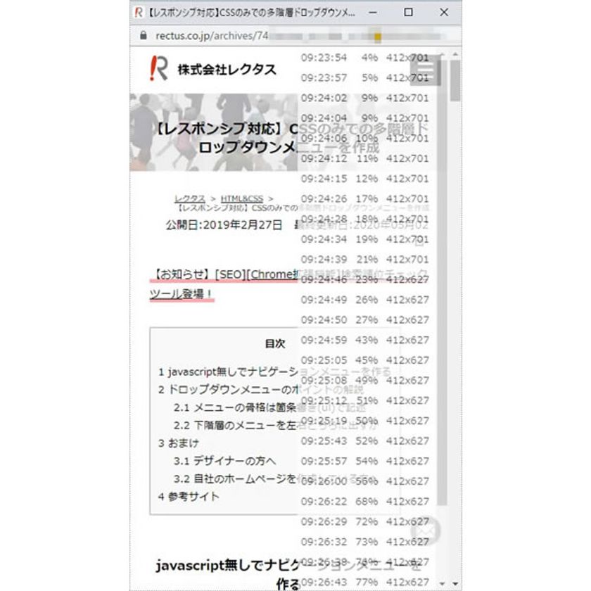 ページ閲覧解析機能(実際の閲覧者がスマホで見た場合のサイズ)