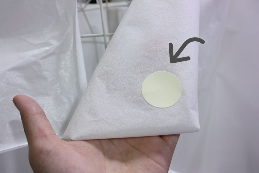 1. ネックシールを裏面(ザラザラしている面)にしっかり貼り付けます。