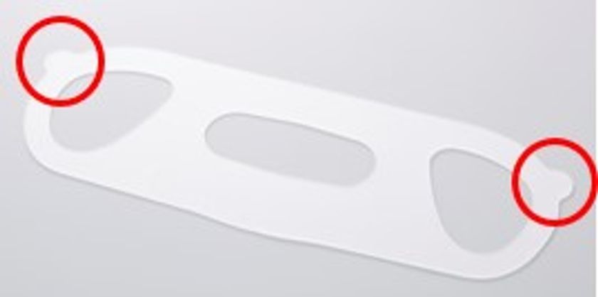 長時間の装着でもストレスが少ない形状とし、「やや大きめ」サイズを追加しました。また、正しい位置に装着しやすいよう丸印の突起部をつけました(図5)。