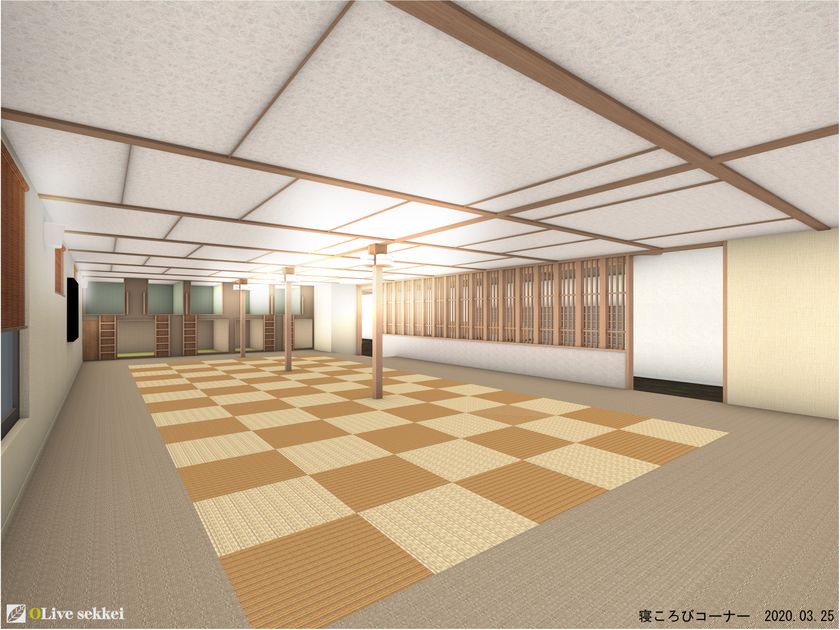 ・レストラン、岩盤浴、脱衣ロッカー等、間隔を開けて運営。