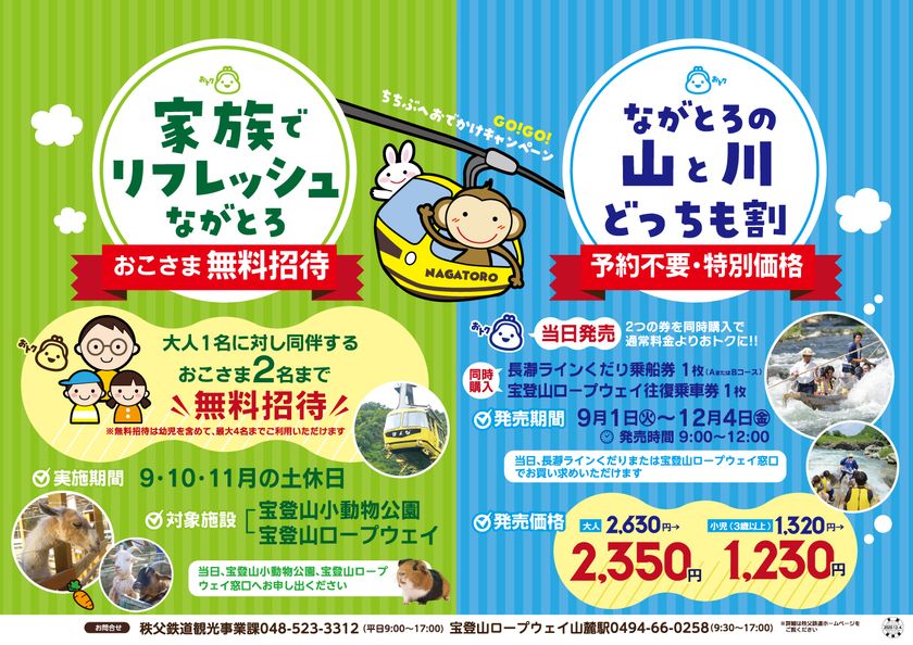 ちちぶへおでかけキャンペーン 第3弾 ながとろの「山と川」どっちも割 〜当日発売!おトクに川下りもロープウェイも楽しもう〜
