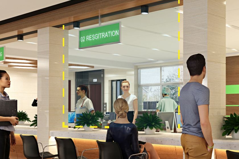 透明な素材なので、視界の妨げにならず、受付や窓口など広範囲の対策やフォーマルな場所の設置にもおすすめです。またジムやコンビニなど間仕切りとしてもご使用いただけます。