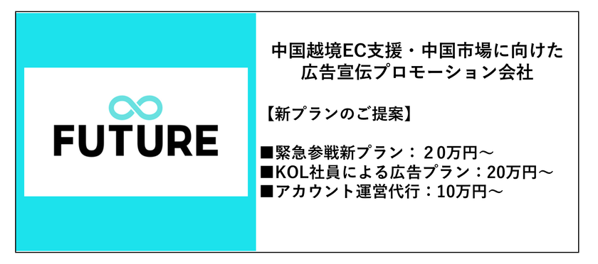 中国越境EC支援・中国市場に向けた広告・宣伝会社プロモーションをする会社、株式会社フューチャー(所在地:東京都江東区、代表取締役:小柳 みゆ、以下 当社)は世界最大のECショッピングイベントである中国の「独身の日」(11月11日)に向けた新広告プランを発表することをお知らせいたします。