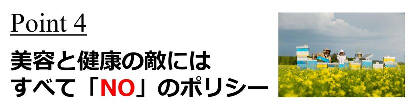 【Point 4 美容と健康の敵にはすべて「NO」のポリシー】