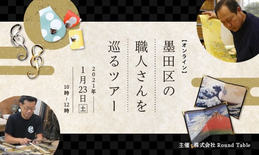 株式会社Round Tableは、東京下町の墨田区と自宅をオンラインで繋ぎ、現地ガイドとのライブ中継でリアルタイムの墨田区を体感しながら、職人さんたちの工房を見学できるツアーを2021年1月23日(土)に開催いたします。
