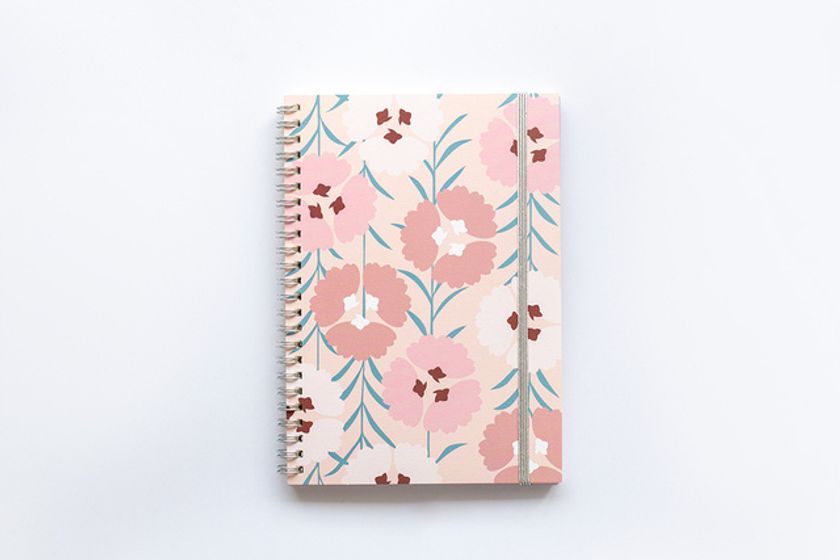 表紙デザインには、京都の老舗きものメーカーから提供いただいた「きもの」の図案を使用。きもの屋のスタッフの方を交えながら、何十種類もある図案からどれを使用するか打ち合わせを行い、カラーバリエーションを何パターンも制作するなど、現代のライフスタイルに合ったデザインにするため試行錯誤を繰り返しました。今回は第一弾として4種の表紙をご用意しています。