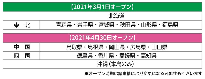 ■今後のエリア拡大スケジュールは以下となります。