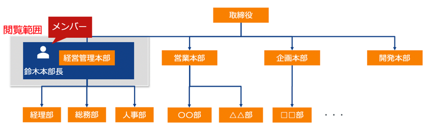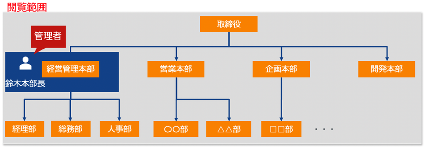 これまでは、権限設定の範囲は、「全ユーザー閲覧可能」か「自分のみ閲覧可能」しか選べませんでしたが、本バージョンより、権限管理画面を新たに追加し、グループを指定して閲覧範囲を設定することが可能になりました。グループの設定と複合的に組み合わせることで、階層的な権限構造を表現することも可能です。