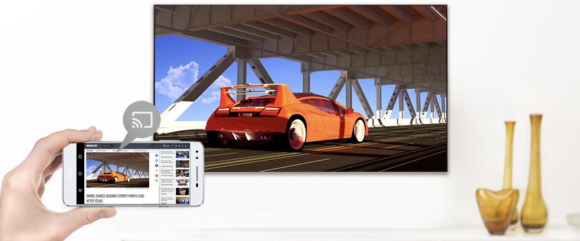 クロームキャスト機能を内蔵、スマートフォンで見ている映像やゲームなどを登録したテレビに簡単に映すことが可能です。