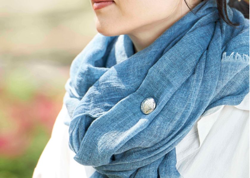 桔梗や菊、萩などの秋草模様を繊細な彫りで表現したピンブローチです。光琳らしいデザインを生かしつつ、秋草を配するバランスにこだわって作られています。胸元のアクセントに、また帽子やスカーフ、バッグなどにつけてもお楽しみいただけます。